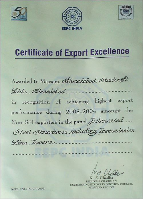 In order to match the specified standard Ahmedabad Steelcraft Ltd. follows consistent and high level approach. This enables us to maintain the international level quality Steel sections and profiles.Recognition